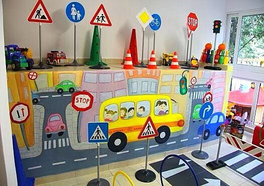 Уголок поможет детям закрепить знания о разнообразии видов транспорта и транспортных средствах, а также пешеходных переходах и дорожных знаках, сформировать умение ориентироваться на улицах города.
