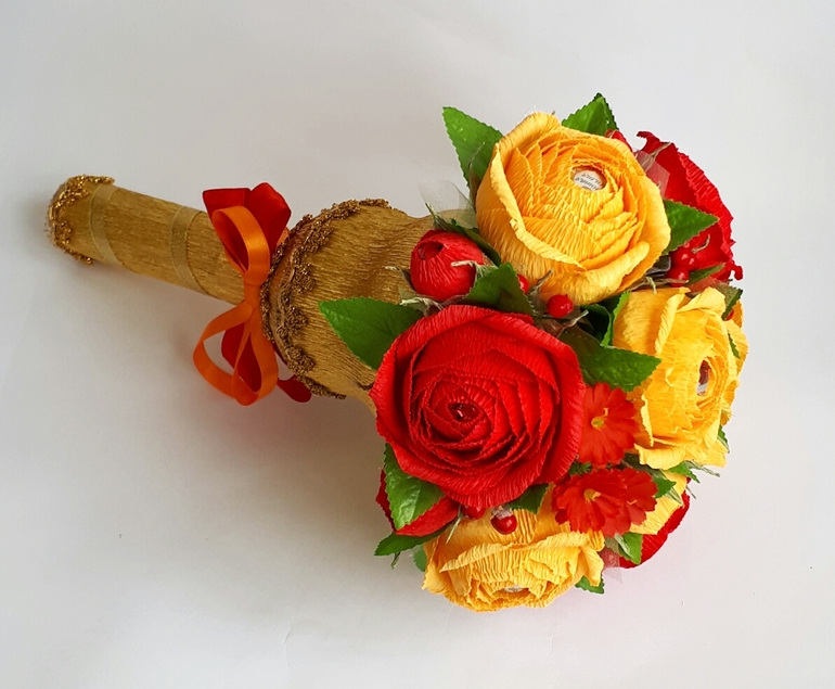 Тут даже и описывать нечего, а, тем не менее, букет не только прекрасно выглядит, но и очень удобен в переноске.