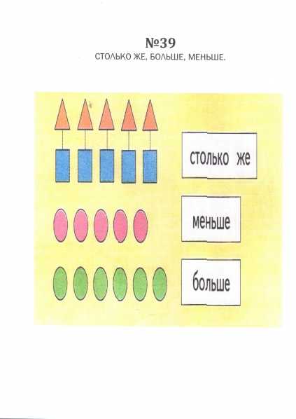 Мета: вправляти у рахунку до п'яти; вчити порівнювати дві групи предметів, додаючи до меншої групи відсутній предмет або прибираючи з більшою групи зайвий; вчити орієнтуватися в просторі.