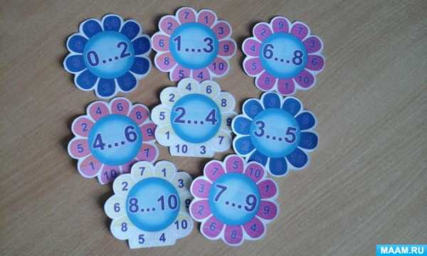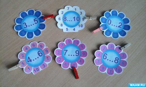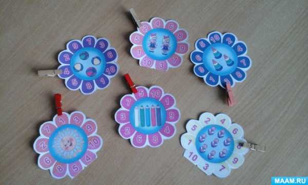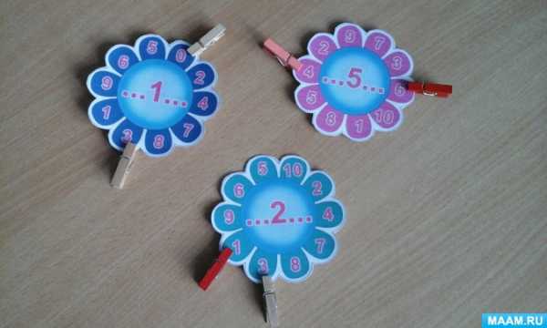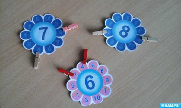 Дитині пропонується порахувати предмети в серединці квітки і за допомогою прищіпки вказати відповідь.