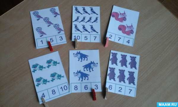 На картках потрібно порахувати і за допомогою прищіпки вказати то число скільки предметів на картці.