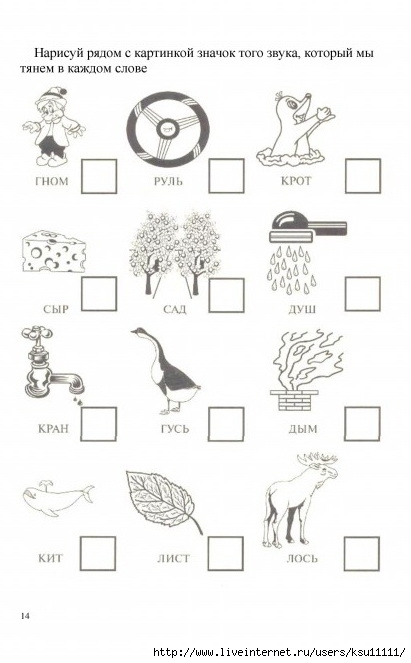 4. Обведи линией красного цвета только те картинки, в названии которых есть звук У