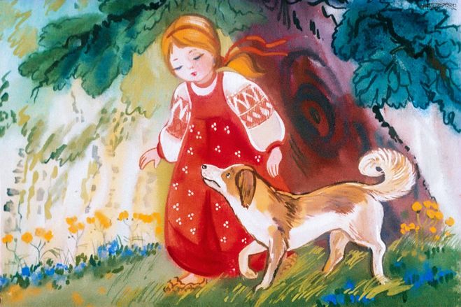 Вот и пошла Жучка, плача, со старикова двора, а пожалели о Жучке только старушка да дочка Снегурочка.