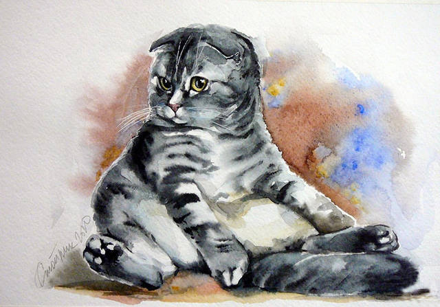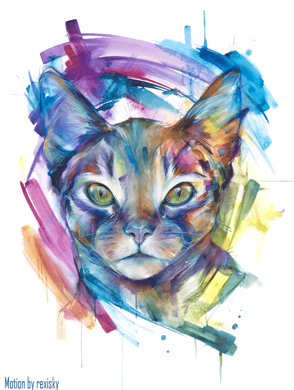 Для того, чтобы было проще ориентироваться в шагах рисования кошки красками, предлагаю такую вот анимацию этих самых шагов. Для просмотра кликните на рисунке кошки — том самом конечном результате рисования кошки красками: