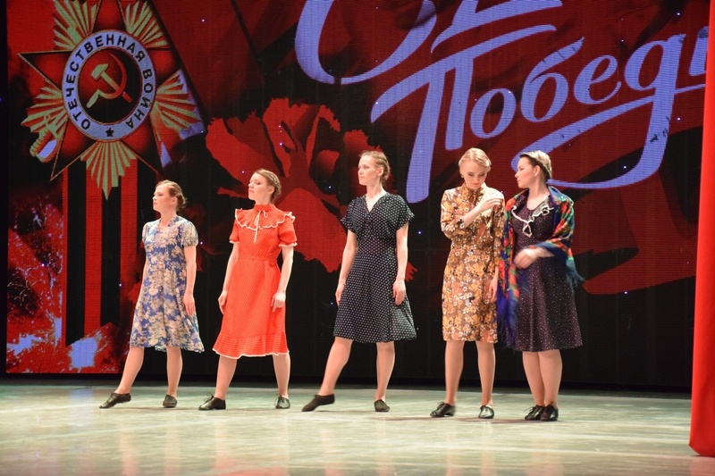 Она. Украшены фасады домов, повсюду развеваются флаги, из окон квартир звучит музыка. Все вокруг наполнено настроением праздника. Город, принаряженный в цветы и разноцветные воздушные шары, стал еще красивее.