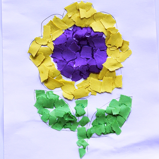 Во-вторых, он видит, что в процессе нет ничего сложного, и учится методу на примере. Вероятно, обрывная аппликация один из самых безопасных методов изготовления поделок.