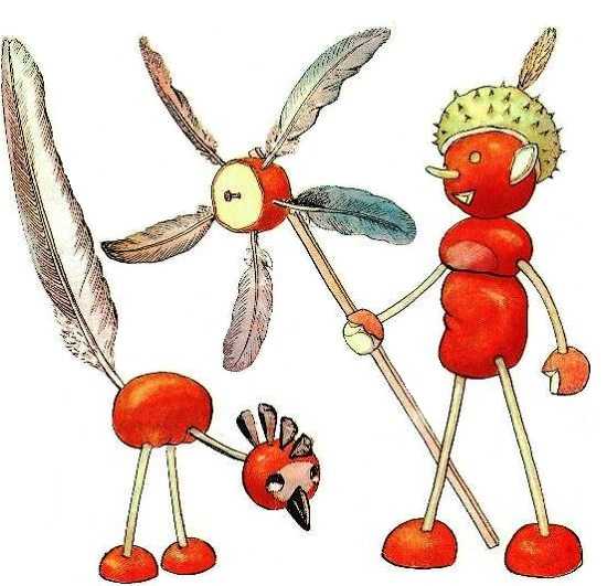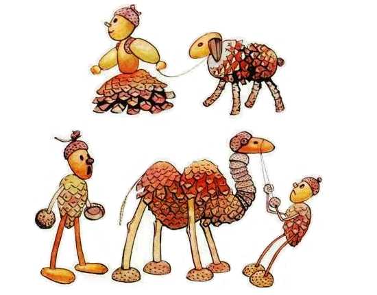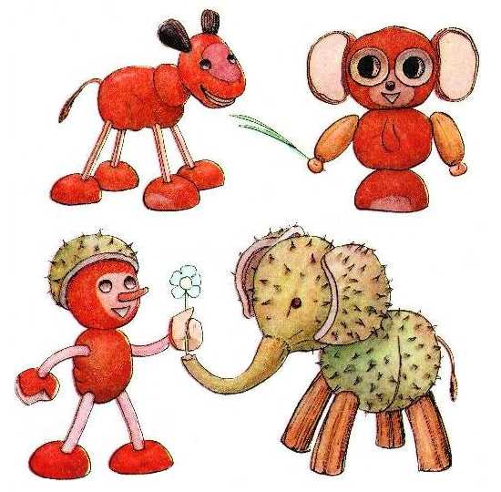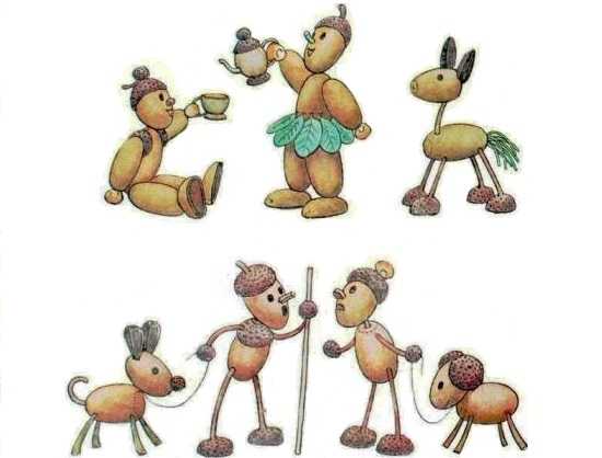 Для того чтобы поделки были прочными и хорошо сохранялись, каштаны, желуди и шишки перед тем, как соединять, лучше проколоть шилом.