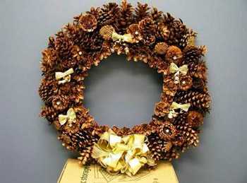 • Выберите шишки примерно одинаковой формы и одного размера. Соедините эти элементы жесткой проволокой так, как показано на фото