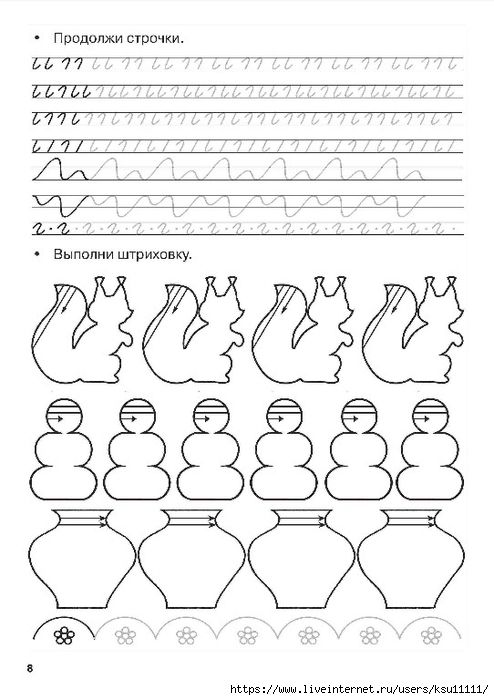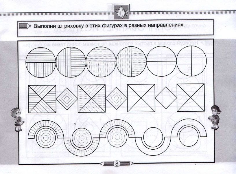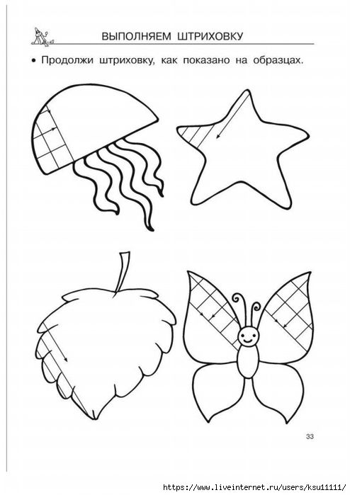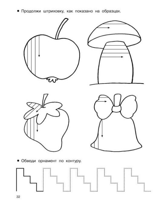 Помимо заданий со штриховками для детей, необходимо последовательно выполнять задания, способствующие развитию мелкой моторики пальцев. Научиться уверенно проводить линии, соединять точки, обводить клетки, рисовать простые и сложные контуры, писать печатные буквы и цифры, элементы прописных букв.