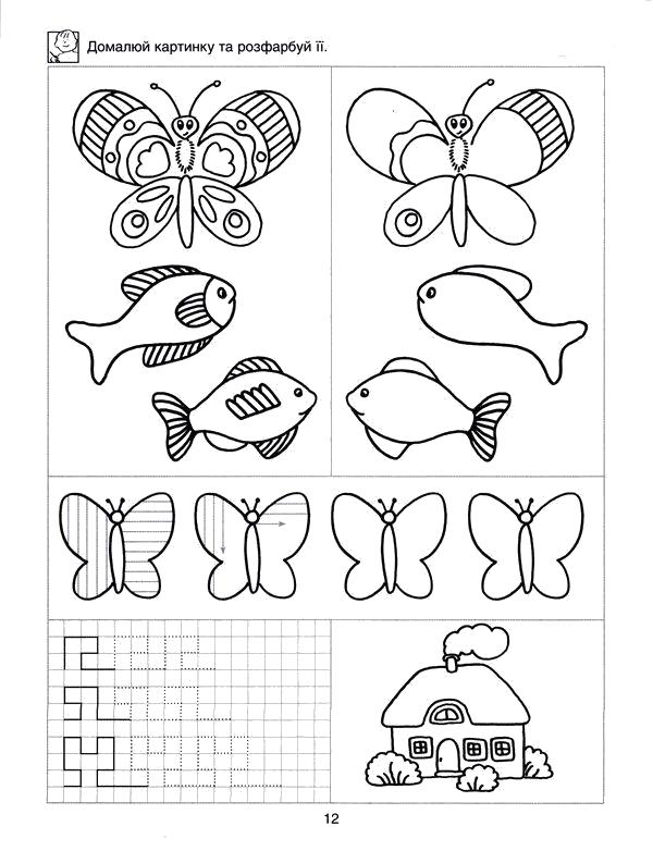 Для малышей хорошо использовать различные готовые картинки, в которых нужно добавить некоторые элементы в виде штриховки.